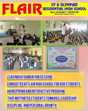 Lead India Foundation, in association with TRSMA, successfully conducted the Aap Bado Desh Ko Badhawoo (ABDB) two-day human transformation program at Flair IIT & Olympiad Residential High School, Bhainsa Road, Sirgapur, Nirmal, from 4–5 December 2025.