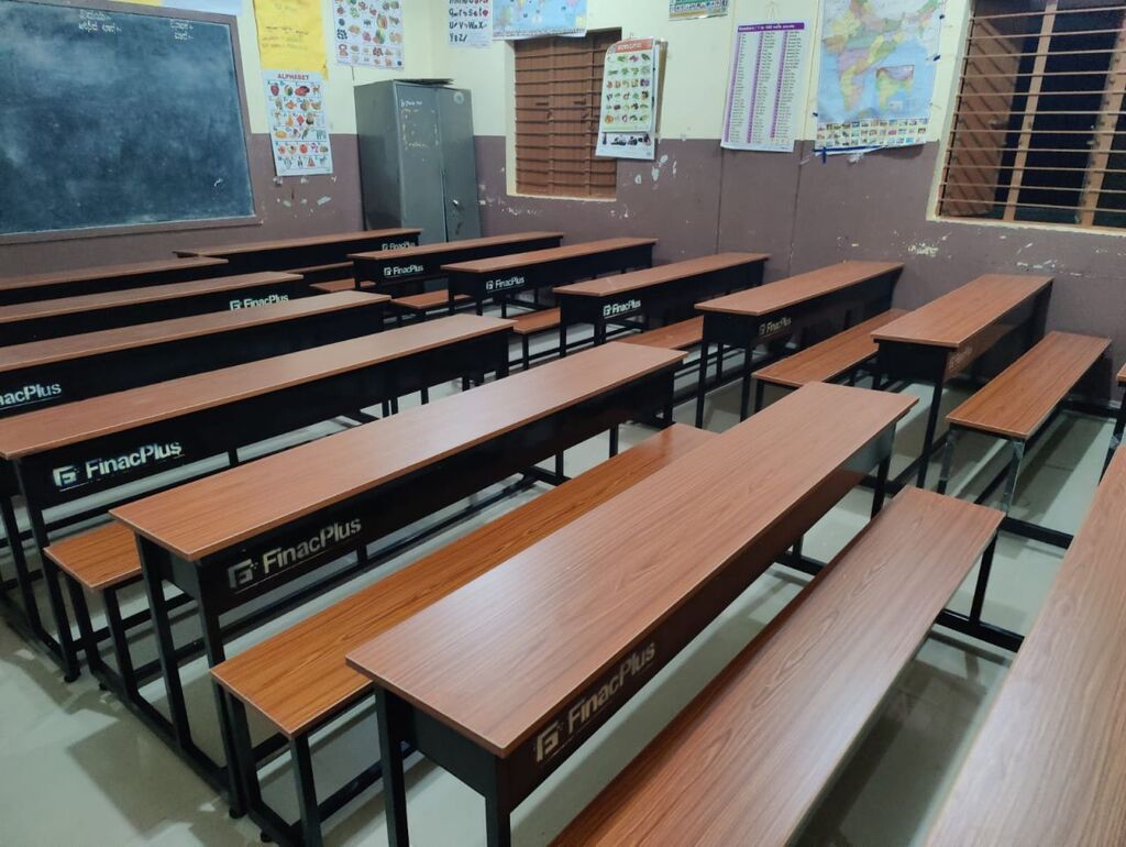 • Donation of 34 desk benches, replacing floor seating with dignity